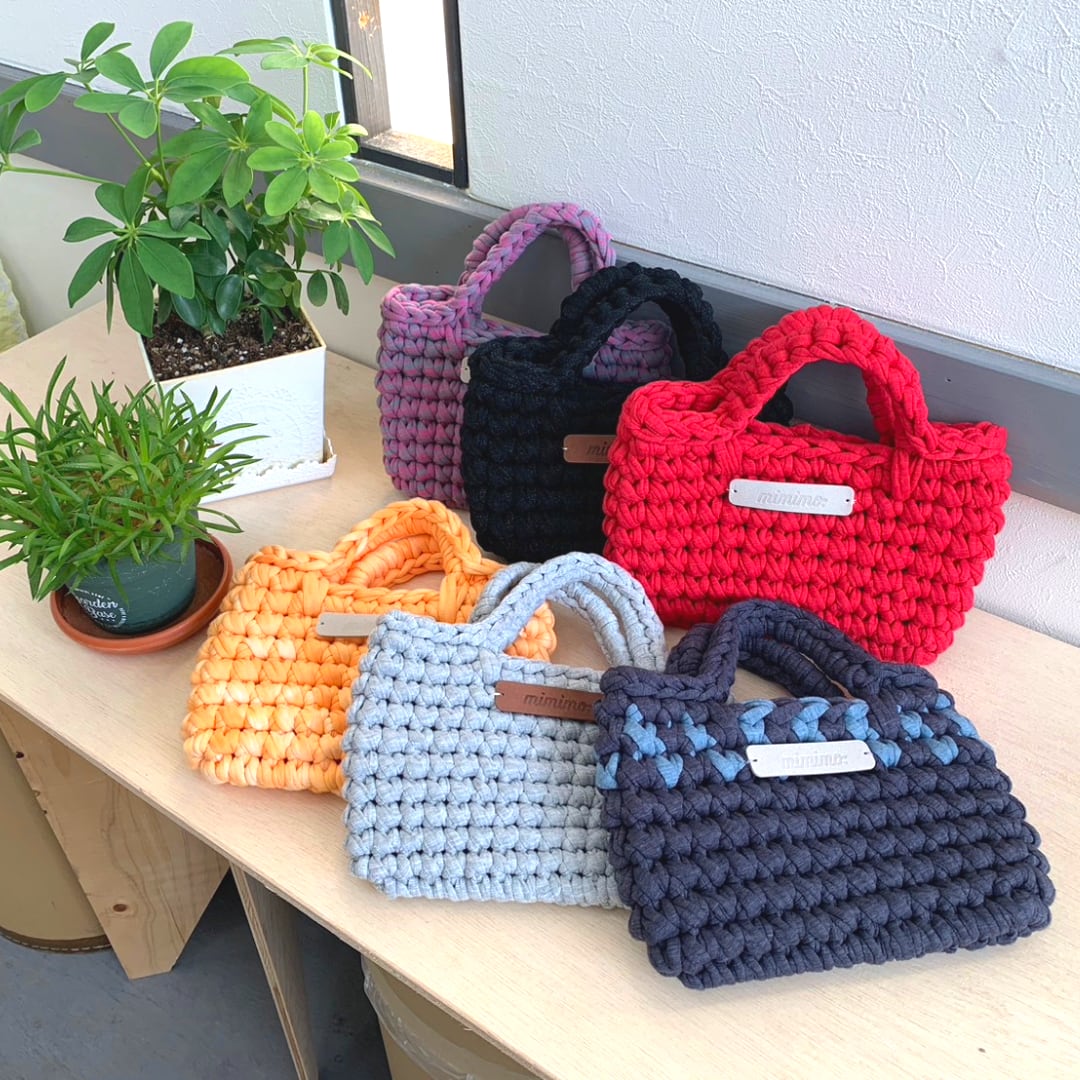 mimimoで編んだぺたんこミニバッグになります。