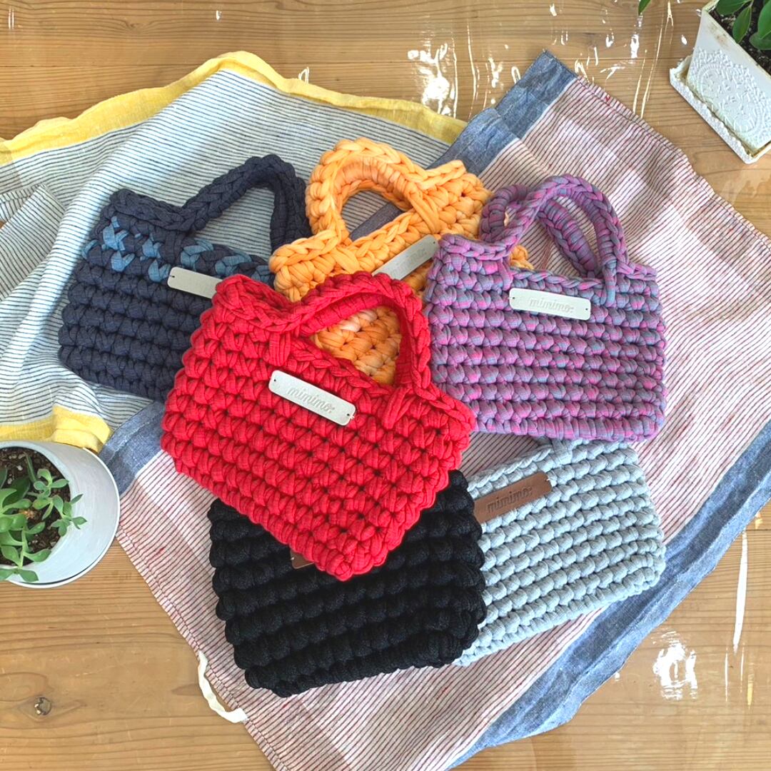 手編みによって1つ1つ丁寧に仕上げたマチなしのミニバッグになります!