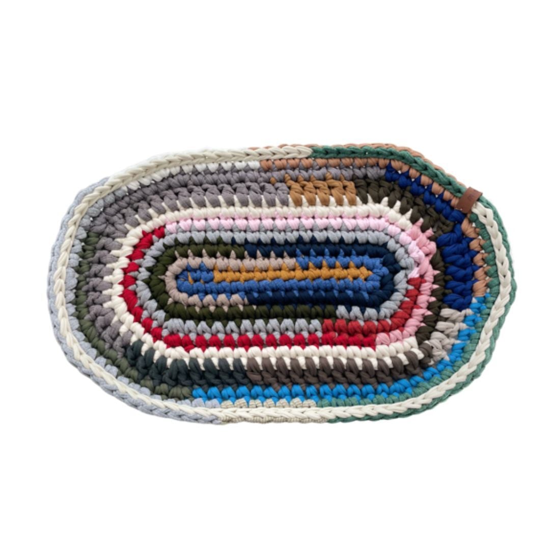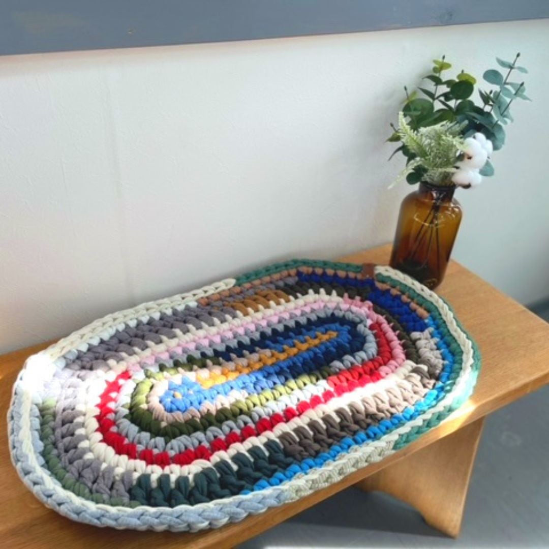 mimimoで編んだ楕円型の玄関マットになります。